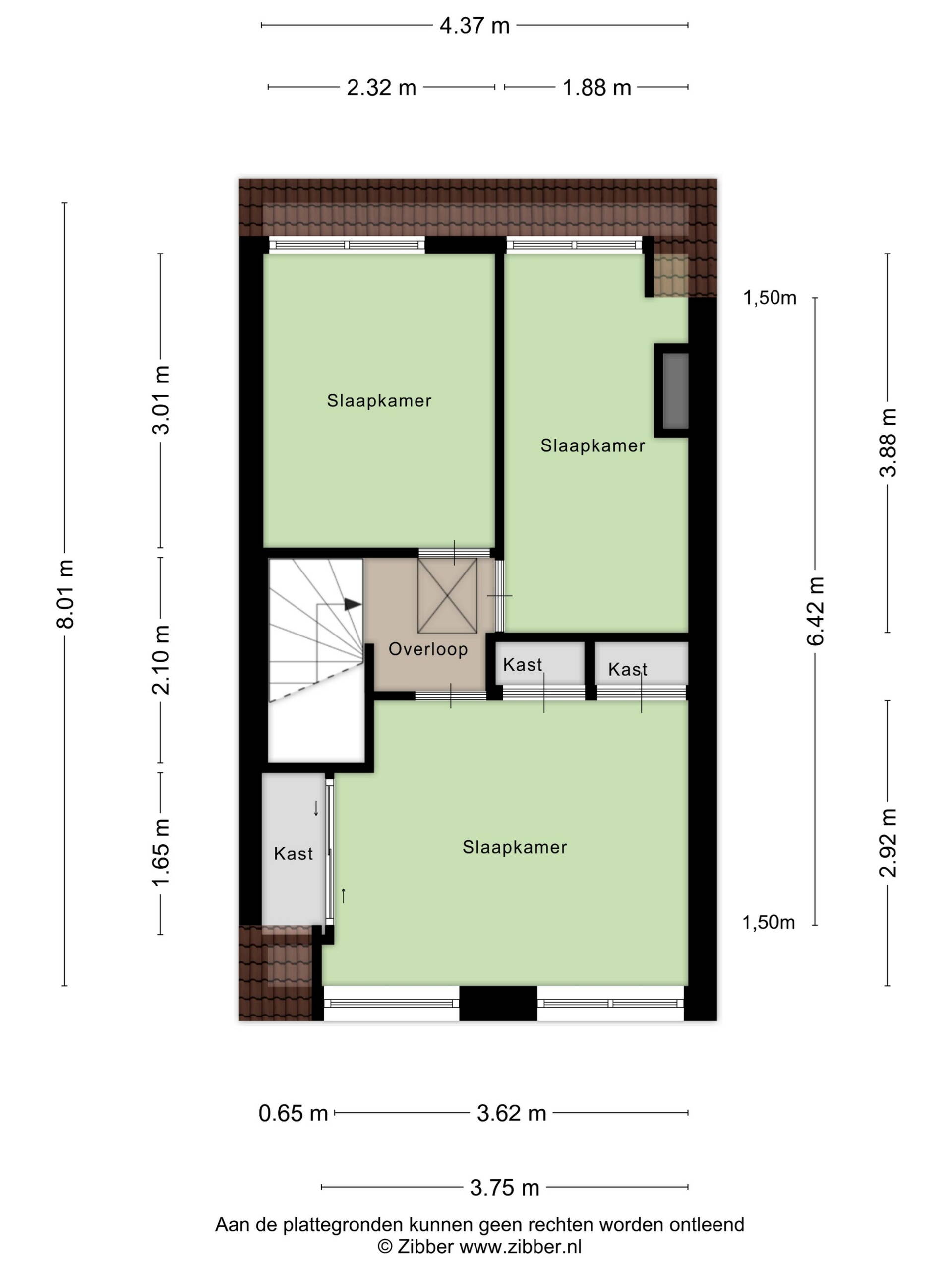 Op de eerste verdieping bevinden zich drie slaapkamers, elk voorzien van daglicht en inbouwkasten met diverse mogelijkheden qua indeling. Ideaal voor een gezin, thuiswerkplek of hobbyruimte. Daarnaast is er een zolderverdieping aanwezig, bereikbaar via een vlizotrap, die uitstekend dienst kan doen als bergruimte.