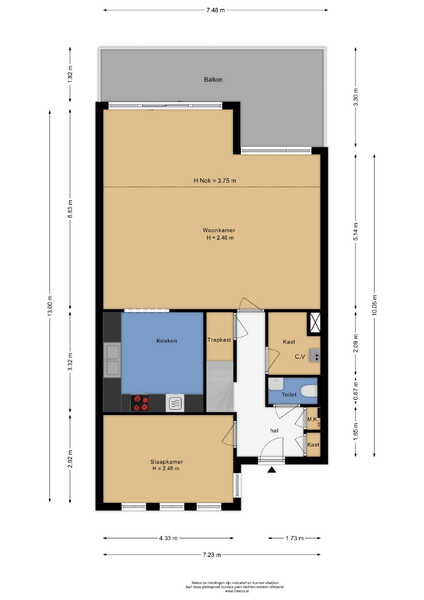 gelegen op het zuidwesten. Daarnaast is er een extra ruimte met toilet, wastafel en