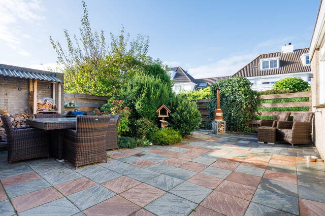Achtertuin: gelegen op het zuidwesten, onderhoudsvriendelijk aangelegd met een ruim terras en groen. Hier kunt u de hele dag genieten van de zon.