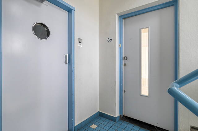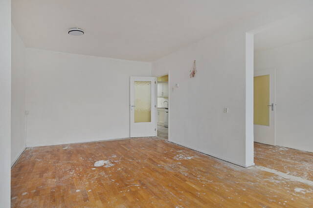 The apartment has two bedrooms. The main bedroom, located at the rear, benefits from plenty of natural light through its large window. The second bedroom, situated at the front, is ideal as a study, guest room, or hobby space and offers access to the front balcony. The separate toilet with small washbasin is located right next to the entrance, where you’ll also find the utility cupboard.