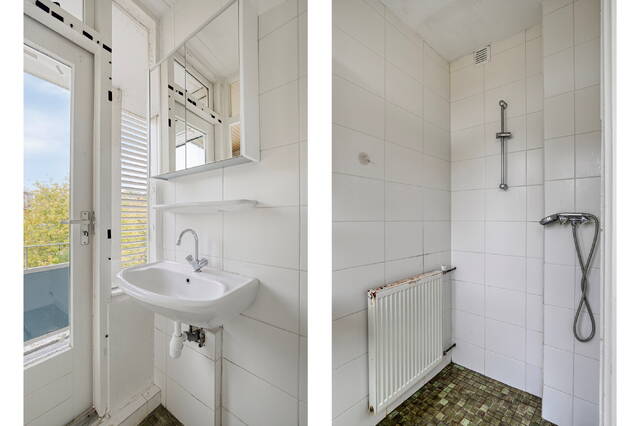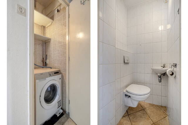 De woning beschikt over twee slaapkamers. De hoofdslaapkamer bevindt zich aan de achterzijde en profiteert van veel natuurlijk licht dankzij het grote raam. De tweede slaapkamer ligt aan de voorzijde en is uitermate geschikt als werk-, logeer- of hobbykamer, met bovendien toegang tot het balkon aan de voorzijde. Het separate toilet met fonteintje bevindt zich direct naast de entree, daar vindt u ook de meterkast.