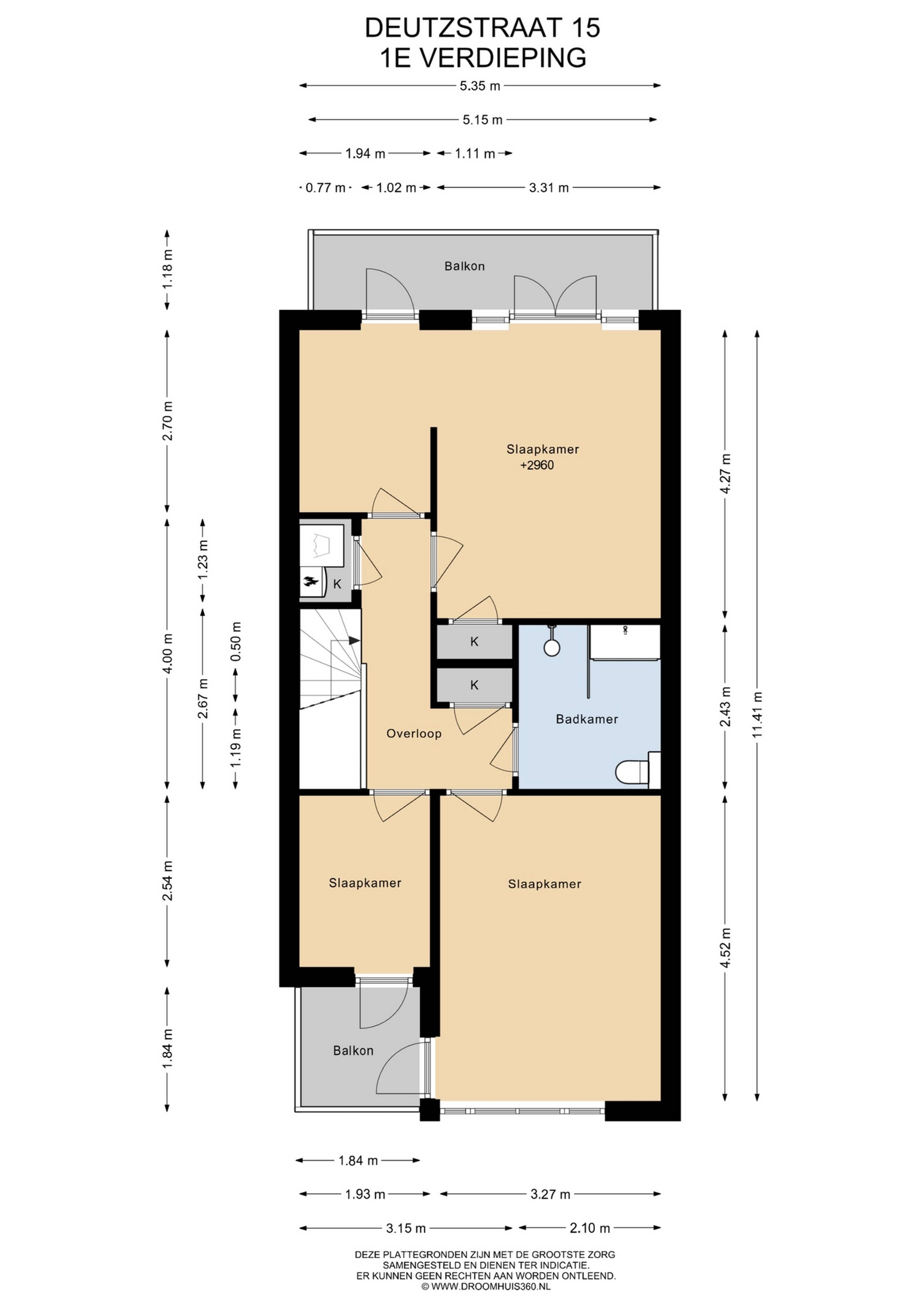 You reach the landing via a fixed staircase. Here is a hall cupboard with the washing machine and central heating boiler, access to the bright bathroom and 3 bedrooms (previously 4). Thanks to the skylight, the bathroom always has plenty of natural daylight and is equipped with a spacious walk-in shower, a sink with furniture and a toilet. The bedroom at the front has a small balcony and the spacious bedroom (formerly 2) at the rear has doors to a large balcony spanning the entire width of the house. The current owner has created a wide opening between 2 rooms, which currently creates a walk-in closet or separate work space. This can easily be reduced to 2 bedrooms.