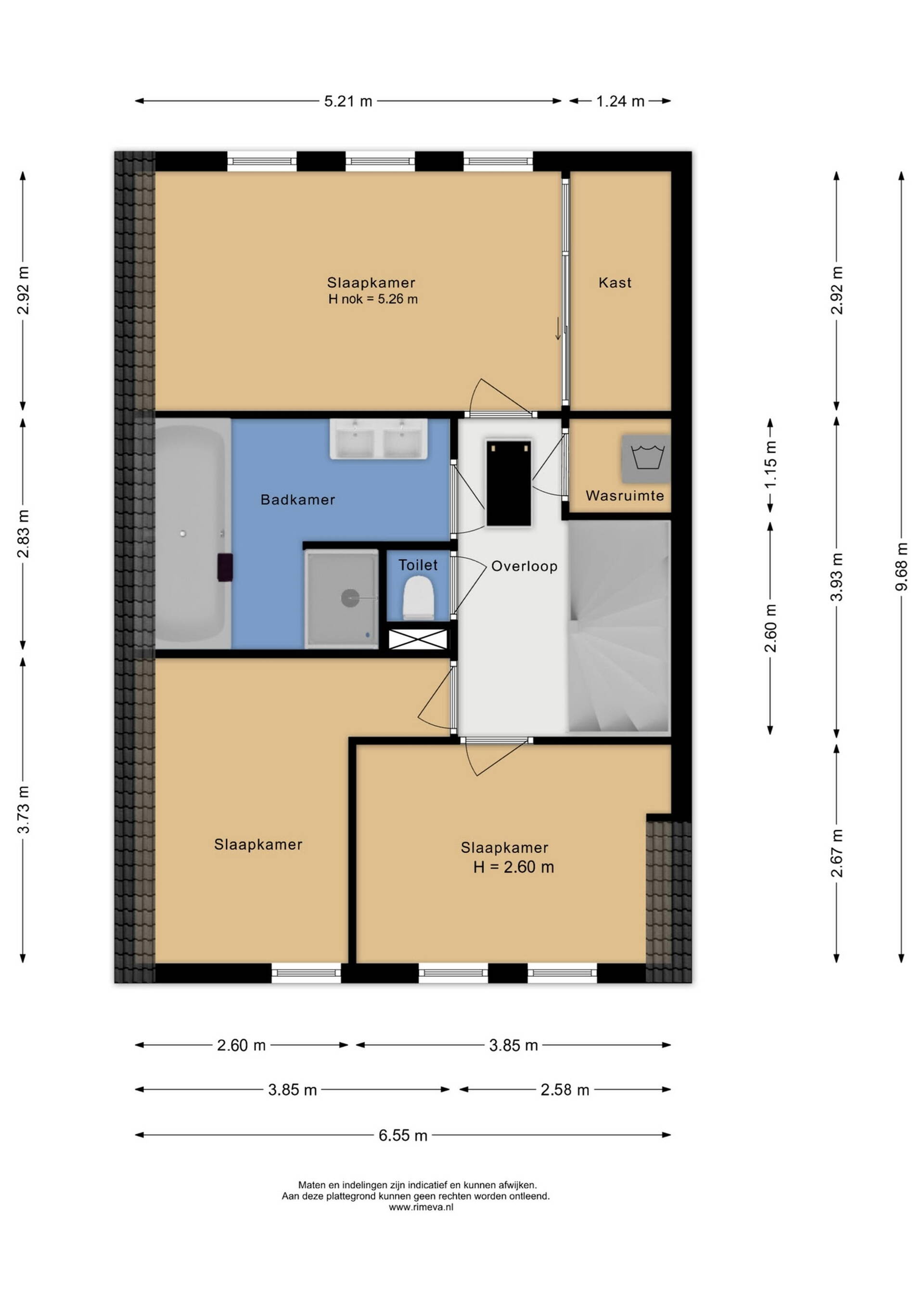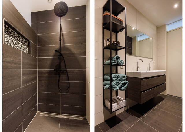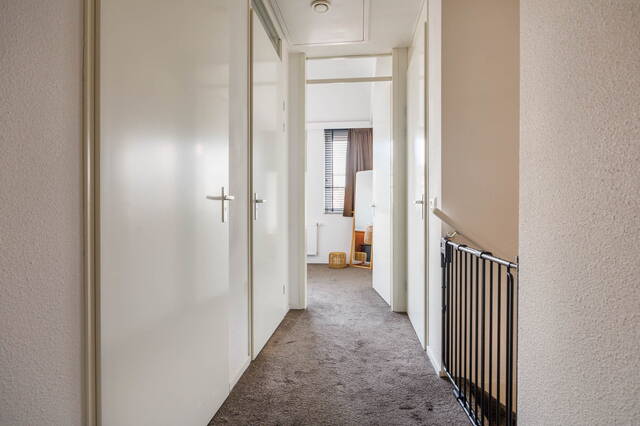 Via de vaste trap komt u op de overloop van de eerste verdieping. Hier heeft u toegang tot drie ruime slaapkamers, een toilet, de royale moderne badkamer en een aparte wasruimte met opstelling voor wasmachine en droger. De ruime slaapkamer aan de achterzijde is voorzien van een inbouwkast en een airco. De twee slaapkamers aan de voorzijde zijn ruim opgezet en hebben veel lichtinval. De royale badkamer beschikt over een ruime inloopdouche, een ligbad, een dubbel wastafelmeubel en een handdoekenradiator.